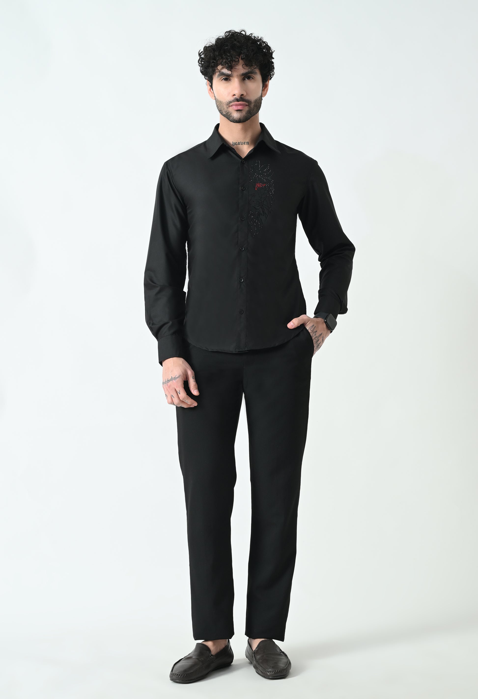 Indyslay Black Designer premium stone work Cotton sheen Shirt (Lion)