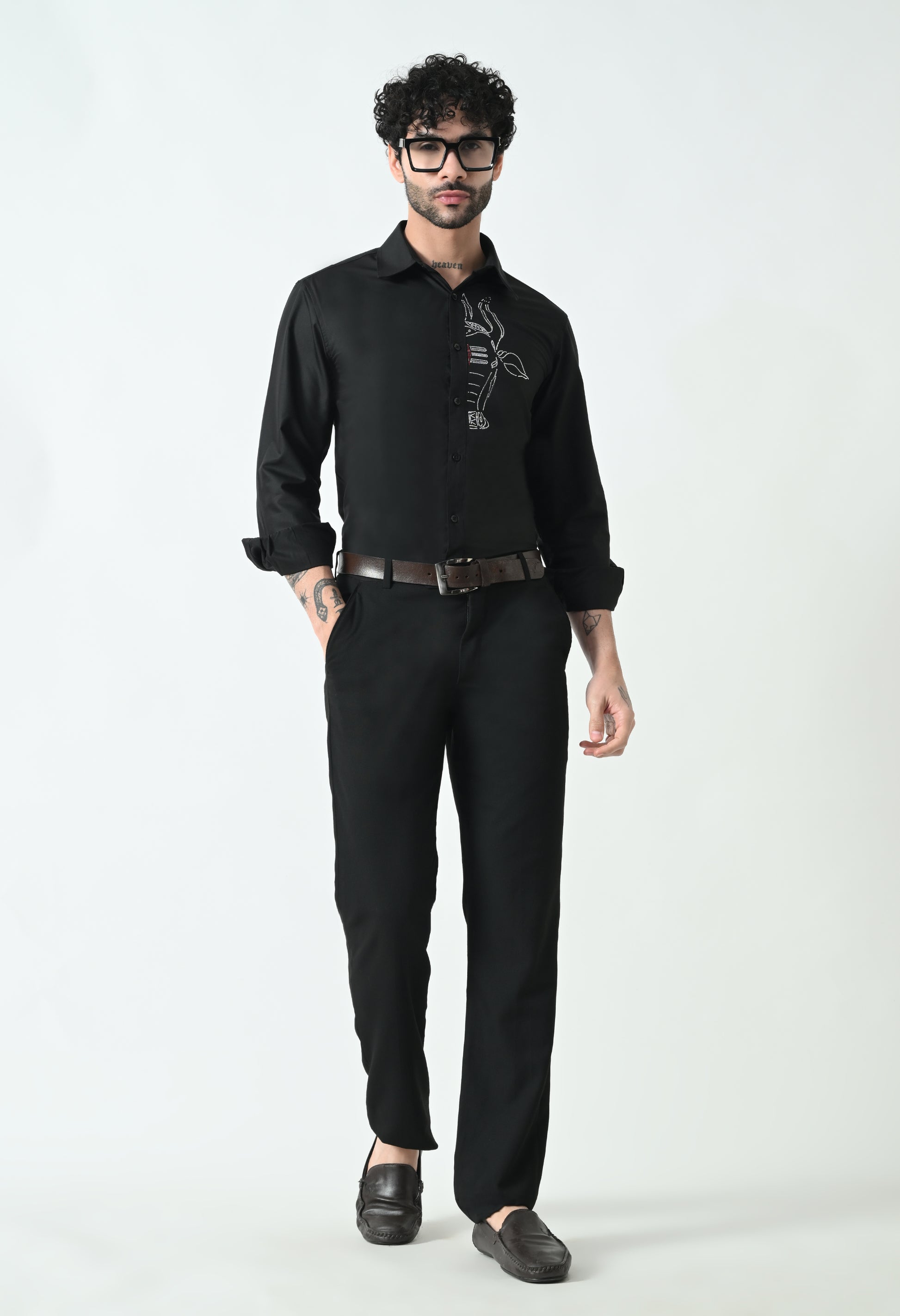 Indyslay Black Designer premium stone work Cotton sheen Shirt (White Nandi)